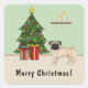 Fawn Pug Cute Cartoon Dog With A Christmas Tree Square Sticker