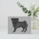 Fawn Pug Dog Canine Cute Cartoon Illustration Blue Postcard