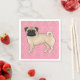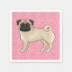 Fawn Pug Dog Cartoon Mops Love Heart Pattern Pink Napkin