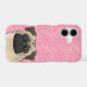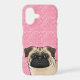 Fawn Pug Dog Head Close-Up On Pink Love Hearts