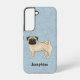 Fawn Pug Mops Breed Dog Cartoon Illustration Blue Samsung Galaxy S22 Case