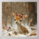 Fawn Red Berries Snow Forest Falling Leaves Poster