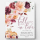 This fall in love bridal shower welcome sign features a burgundy fall autumn floral design. The script heading is an image that cannot be edited. All of the other text is fully editable. For more advanced customisation of this design, simply select the "Customise It" button above.