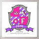 Faye name meaning unicorn princess letter F knights style crest graphic nursery poster. A great gift idea for a new baby, christening or baby naming. Poster is in shades of pink, purple, white and grey. Personalise with your child's name and name meaning this example is for the name Faye Loyal fairy. Trustworthy, kind and supportive. Other letters and name meanings available or for help please contact me. Unique drawing shield heraldry graphic with a crown tiara, unicorn, art and design by Sarah Trett. www.sarahtrett.com for www.mylittleeden.com