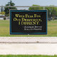 Our In Fear For Our Democracy, I DISSENT Lard Outdoor Yard Banner is perfect for today's challenging times. Design features quote from Associate Justice of the Supreme Court, Sonia Maria Sotomayor. Available in a variety of mounting brackets, or as an indoor banner at a reduced cost. A great reminder to help save our Democracy!