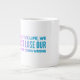 Some days, a regular size cup of joe just won’t do. When you need that extra jolt of caffeine, reach for your extra-large coffee mug from Zazzle. It will accommodate a full 20-ounce Venti pour. Perfect for soup, cereal, ice cream, or chilli too! This giant mug features a C-shaped handle for comfortable sipping.