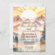 Boho and rustic Christian gender-neutral first birthday design based on psalm 139 "Fearfully and Wonderfully Made" with a watercolor-style landscape with mountains, fir trees, and a rising sun.