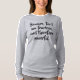 I love this shirt. I had written to the artist asking her if this picture was available on a shirt, and she wrote me back telling me where I could find the shirt. These shirts can be custom made to have a different saying. I loved this saying and went with it. The artist wrote me back later to tell me that she had seen my order go through. How's that for service? Pretty special. It's just as displayed. Perfect!