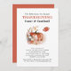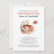 Personalised Feast and Football Thanksgiving Dinner Invitation... Thanksgiving is a day of gratitude, for the bountiful feast of turkey and pumpkin pie - and for the three games of football you can watch at your leisure with friends and family... all day long, if you choose. Our pumpkin floral football themed Thanksgiving dinner invitation lets your invitees know that they can relax, nosh, and cheer in a friendly, comfortable atmosphere. The example heading for the invitation currently reads: "The Robertsons' 1st Annual Thanksgiving Feast & Football" with your invitation and RSVP wording below. All text can be easily revised on the personalisation template.