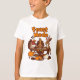 The t-shirt feels and looks great quality, a good thick cotton. It will be a little big for my son, but that means he will be able to wear it and not out grow it too soon. The print was as described on the order when personalised. True size, shape and colour T-shirt- thanks.