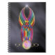 A brilliantly-coloured flowing abstract framed in gold and studded with diamonds and pearls. Sinuous glowing streams of red, yellow, green, blue, purple, and pink curve smoothly, crisscrossing from one great pearl down to the tip, accented at the end by a starburst. This rainbow design is laid against a background of black silk.