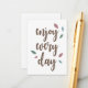 Enjoy every day, calligrpahy motivational phrase, boho feather falling from the sky.