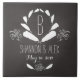 Celebrate the wedding day or anniversary of your favourite bride and groom with this customisable keepsake! An elegant white ring of feathers on a black chalkboard background surrounds a monogram; couple's names and wedding date can be customised below. Makes a beautiful, modern, personalised gift.