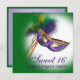 Gold purple sequins feather masquerade mask green purple sweet 16 masquerade birthday party invitation.