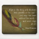 Beautiful painted feather with a quote by Emily Dickinson about hope: "Hope is the thing with feathers that perches in the soul - and sings the tunes without the words - and never stops at all." Beautiful sage background. An amazing gift for anyone. Photography and art by the designer.