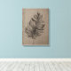 Feather no. 1 pen and ink hand drawn feather illustration with taupe coloured linen image as the background.