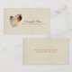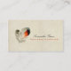 A lovely, simple, elegant and understated business card featuring a large, grey and orange feather and a smaller, brown-grey feather