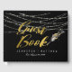 Vintage retro yet modern Wedding Guest Book design with sparkling string lights, guest book in gold calligraphy and a feather pen for you to personalise. It’s a beautiful Wedding Guest Book that will accurately keep your memories about this special day. All your guests will write something they want to wish (or, maybe, advice) to the newlyweds. And years after you’ll look through it and your memory will fly you back to such a happy day.