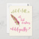 NewParkLane - Postcard, design with a green and pink feather and inspirational quote: "What if I fall? Oh but darling, what if you fly?!"