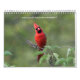 The birds pictured are in order of months: Tufted titmouse, female Cardinal, American Robin, Song Sparrow, Grey Catbird, male Cardinal, American Goldfinch female, Downy Woodpecker, House Sparrow, Black-capped chickadee, White-breasted Nuthatch, and American Goldfinch male.