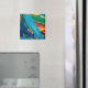 Bright colourful red, aqua, yellow, orange, green and blue crafting feathers make this magnet unique