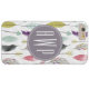 A gift featuring a pattern of illustrations of feathers with a chevron background. Personalise with your monogram over purple circle.