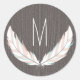 Feathers + Barn Wood Monogram Sticker