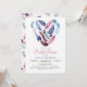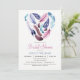 Purple, pink, violet feathers bridal shower invitation. Invite features feathers in shape of heart on front, with custom pattern on back.