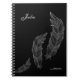 Feathers Fall Art Illustration Outline in Light Grey on Black on a personalised notebook.