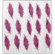 Purple and pink watercolor feathers on a shower curtain.