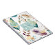 This custom monogram design features a floral background with gold colored celestial accents, including a large sun, moon, stars, eye, triskelion, and pentacle. All of the gold colored graphics may be manipulated, and the text, fonts, and color of the squares are customizable.