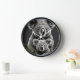 The size of the clock is dramatic and the abstract alcohol ink design is soothing and intricate at the same time. I chose the black frame that adds pop to the blue and gold design. The gold printing would be better in a slightly darker or larger font. I love it and I’m looking for just the right place in ny new apartment. I would recommend this clock for a personal gift or a present. I feel that the quality is excellent for the money! I’m a bit of a clock nut so I’m pretty particular about my purchases. The clock is larger in diameter than many if the clocks I have, so it stands out very well. I think a slightly darker printing color and a moderately larger size would best suit a professional decor or add more impact in a work place item.