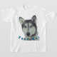 An adorable T-shirt features a cute husky portrait with phrase "Feed Me!".