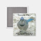 Square Magnet features a photograph of a Blue Jay proclaiming the bird feeder's empty.