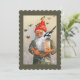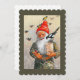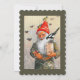 Vintage artwork/illustration depicting a smiling gnome feeding the birds. Dutch Christmas "Vrolijk Kerstfeest".