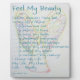 This poster features the inspirational cancer poem "Feel My Beauty". Personalise this cancer poem with your own text or images using the "Customise It" option. It makes for a great healing gift for a cancer patient or caregiver support! Feel My Beauty Cancer changes living but in my life... I choose to know my love, I choose to believe in hope, I choose to keep my faith, I choose to welcome my peace, I choose to build my friendships, I choose to keep my sweet memories, I choose to accept my grace, I choose to embrace my courage, I Choose My Life, My Life, My Choice, Love ~ Beauty