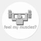 A grey design featuring a weight lifter and text that reads "Feel My Muscles?" on Feel My Muscles T-shirts and gifts.