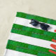 Series of stacked, planks in green, and light-green, stripes, blended with grey, upon a white, background-emblazoned, with the phrase, "I'm Feelin Beachy", in vibrant orange, block letters.