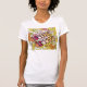 Women’s white Bella Canvas fine jersey t-shirt with "Feeling Groovy" printed in 1960s-style lettering across a vintage 1960s pink, yellow and orange floral design. See the entire Psychedelic 60s Apparel collection in the PARTY FAVORS section.