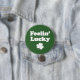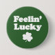 Feelin' Lucky funny button with shamrock. A great button to wear during St. Patrick's Day. Let everyone know at the bar that you're feelin' lucky. Great for an Irish bar, Irish festival and St Patty's Day.