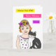 Cute hand drawn whimsical folk art girl with a black and white cat. A sweet card to let a friend who is going through a hard time, that you are thinking about them.