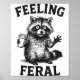 Feeling Feral Raccoon Drink Coffee Funny Trash Pan Poster