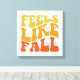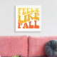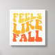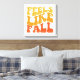 This bold and vibrant fall-themed artwork features the phrase "Feels Like Fall" prominently displayed in a retro-inspired, chunky font. The text is arranged in a dynamic, playful layout that draws the eye and adds a sense of movement to the design. The warm gradient colour palette transitions from golden yellow to deep orange, perfectly capturing the rich hues of autumn leaves. The simplicity of the design, paired with its nostalgic typography and striking colours, makes it a perfect choice for seasonal decor, apparel, or promotional materials celebrating the arrival of fall. This artwork is ideal for evoking the cosy and nostalgic feelings associated with the autumn season.