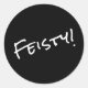 Feisty! written in white, modern trendy font typeface on a classic black & white sticker. This design is available in two sizes (large 3" with 6 to a sheet or small 1.5" with 20 per sheet). You can also choose glossy or matte finish. Although it is also available in many shapes, this design won't look good on all of them (unless you edit it), If you choose an option other than the one shown, make sure to preview it before ordering - just to make sure you like the results.