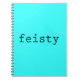 Having or showing exuberance and strong determination, that's feisty. Is that you or someone you know? Show it off with the word "feisty" written in black in a cool font.