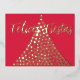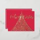The Felices Fiestas Script Holiday Postcard design features a tree with golden flakes, the image features a simple yet elegant gold and red design which can be used by anyone during the holiday season.
