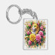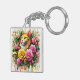 Feline Amidst a Vibrant Floral Bloom Key Ring