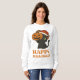 Get into the holiday spirit—all of them!—with this adorable Black Cat Halloween Sweatshirt. Featuring a plump, wide-eyed black kitten wearing a jaunty red Santa hat and proudly holding a classic carved jack-o'-lantern. The festive 'Happy Halloween' text completes this unique, mash-up design.