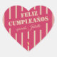 Beautiful minimalistic hot pink spanish birthday stickers adorned with beige stripes and a candle. These stickers can be personalised with the name of the birthday celebrant.