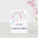 Spanish birthday card (tarjeta de cumpleaños) with birthday message in Spanish (Feliz Cumpleaños, happy birthday in Spanish) and traditional Mexican fiesta style illustration. Includes birthday message inside card, 'Feliz Cumpleaños'.